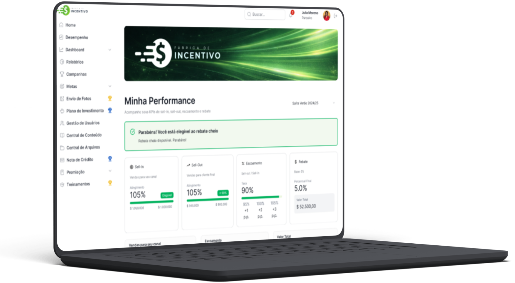 Automatize campanhas de incentivo, acompanhe resultados em tempo real e engaje seus times com uma plataforma que cresce junto com o seu negócio. Simples, personalizável e pronta para conectar ao seu ERP ou CRM.