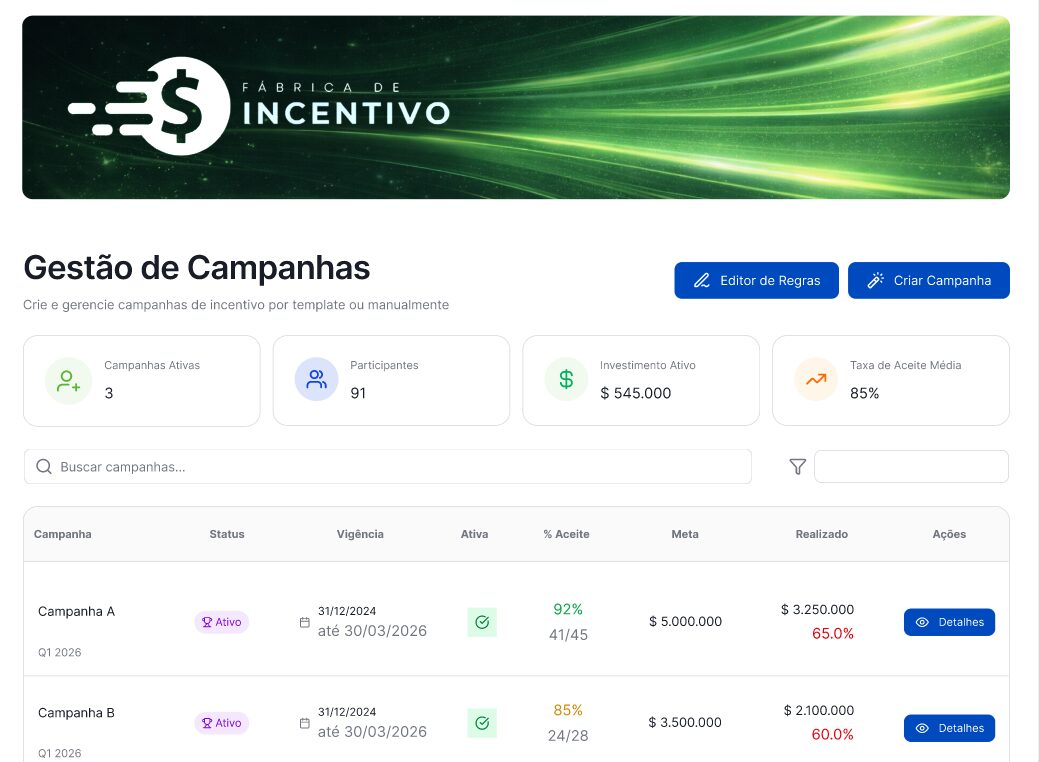 Plataforma SaaS para criação e gestão de campanhas de incentivo, premiações e engajamento de equipes