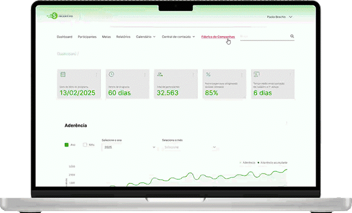 Crie campanhas de incentivo de forma rápida e intuitiva. Defina regras de pontuação, metas e prazos em minutos, sem complicações técnicas.