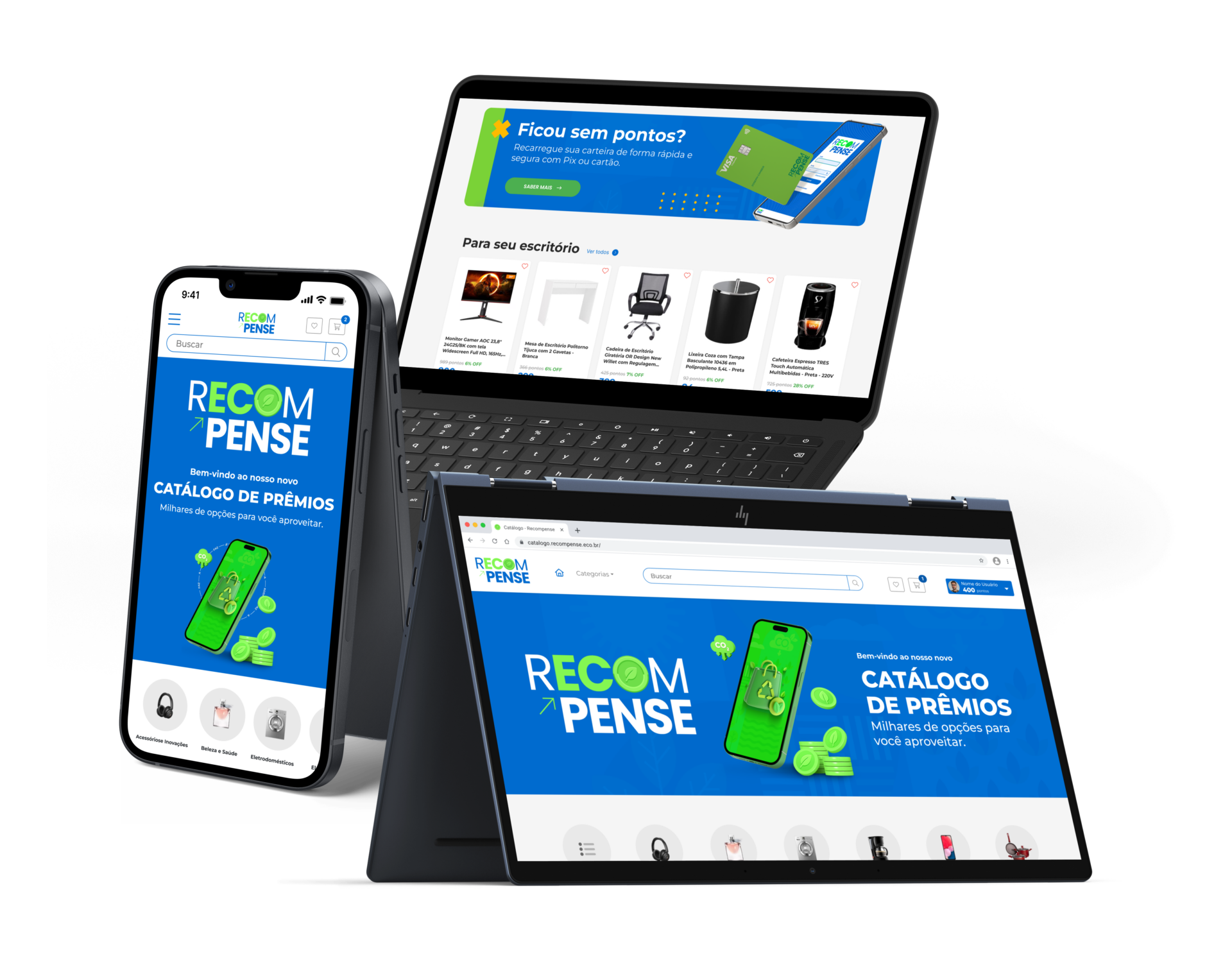 Marketplace de recompensas com milhares de opções, gestão de pontos e uma experiência flexível e sustentável para o usuário.